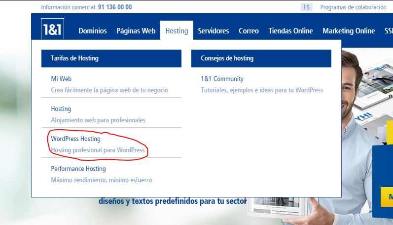 Paso 1: Haz clic aquí y después selecciona Hosting > WordPress Hosting